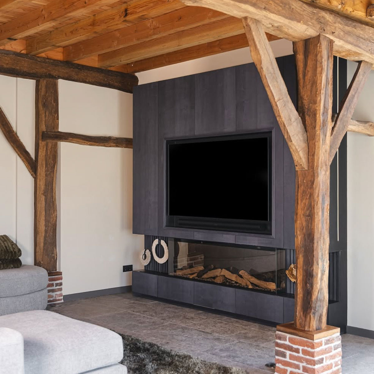 Ben jij ook fan van een industrieel interieur? Stoere, krachtige en rauwe materialen passen hier goed bij. Ieder interieur is uniek, doordat de exacte invulling per interieur verschilt. Zwart is een kleur die makkelijk te combineren is en voor contrast in de ruimte zorgt. Stevige kleuren zoals grijs, groen en blauw zorgen voor het ultieme industriële gevoel. Maak gebruik van pure materialen zoals beton, staal en hout. Iets wat snel vergeten wordt in een industrieel interieur is dat er geen gebruik wordt gemaakt van warme materialen, zoals bijvoorbeeld hout. Onze vlakke wandpanelen bieden hier een geschikte oplossing voor. Door de wanden te bekleden met onze houten panelen, zal de warmte en gezelligheid niet verloren gaan in de stoere ruimte! Zo ontstaat de perfecte balans tussen de "kille" en het warme interieur doordat onze houten panelen een plekje hebben gekregen!
