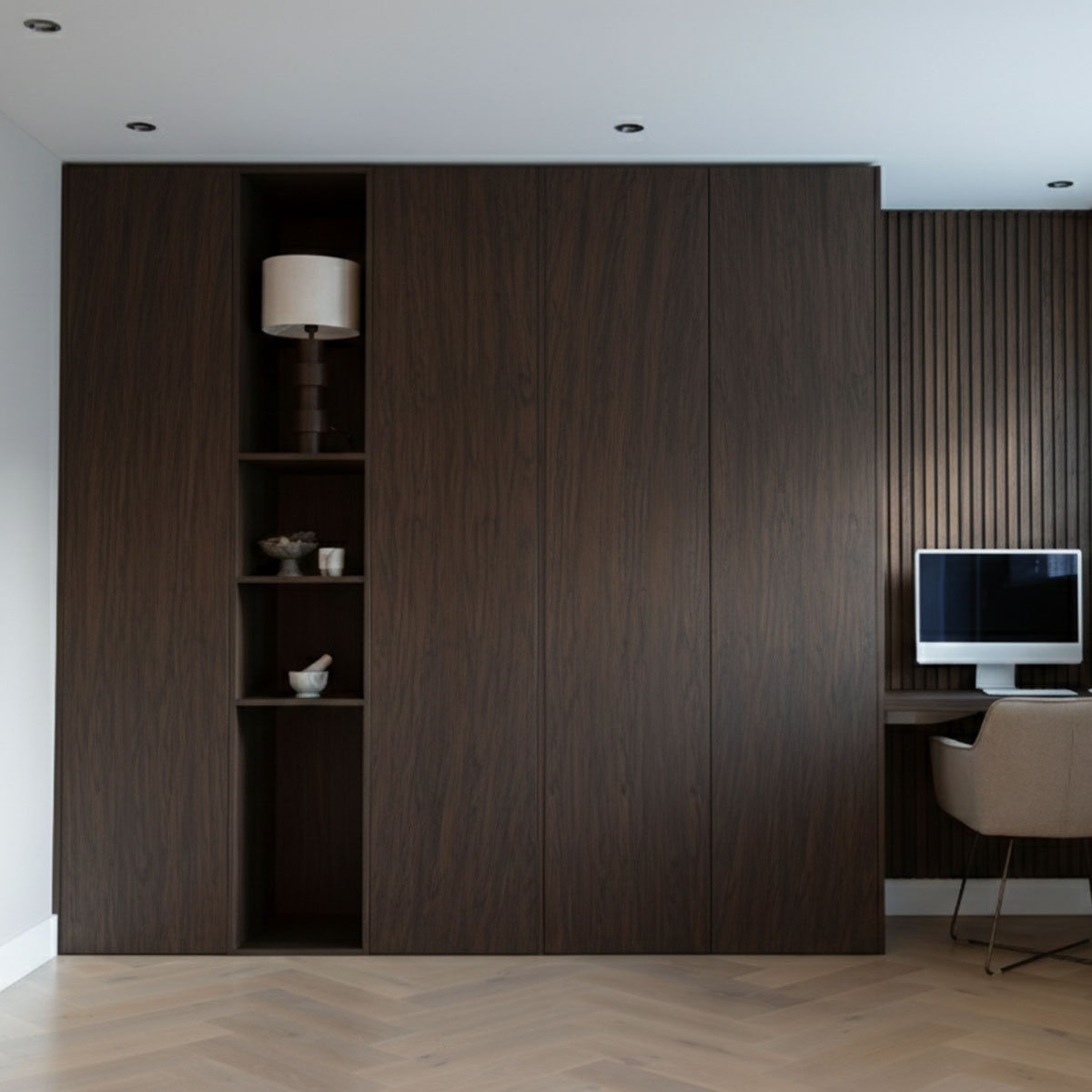 Voor een complete en naadloze afwerking kun je de zijpanelen van hetzelfde houtfineer gebruiken als wangen. De zijpanelen worden geplaatst aan de zichtkant(en). Dit creëert een strak geheel wat de upgrade van de kast helemaal afmaakt!