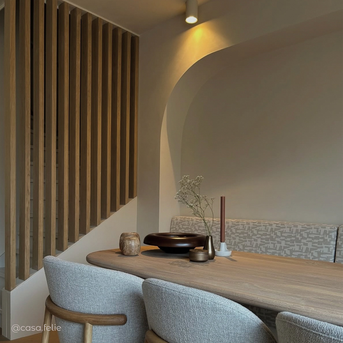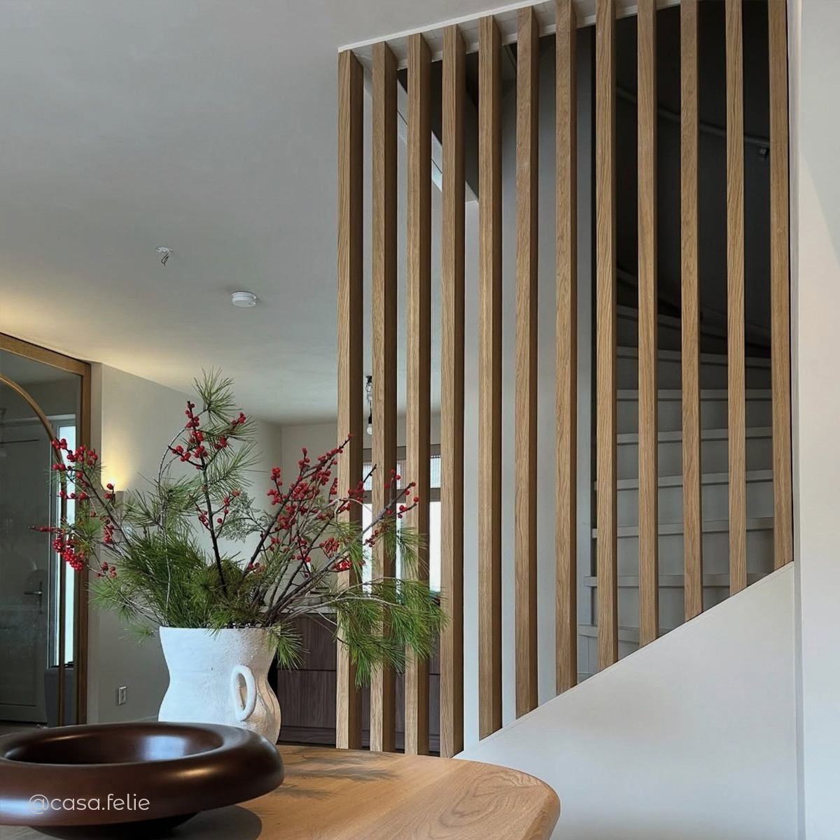 Sfeervol en toch minimalistisch! De roomdivider in de kleur walnoot geeft een natuurlijke uitstraling en zorgt voor een stijlvol interieur! Het walnoot past goed in een Japandi interieur, een tijdloze interieur trend die zeker nog een hele poos blijft hangen!